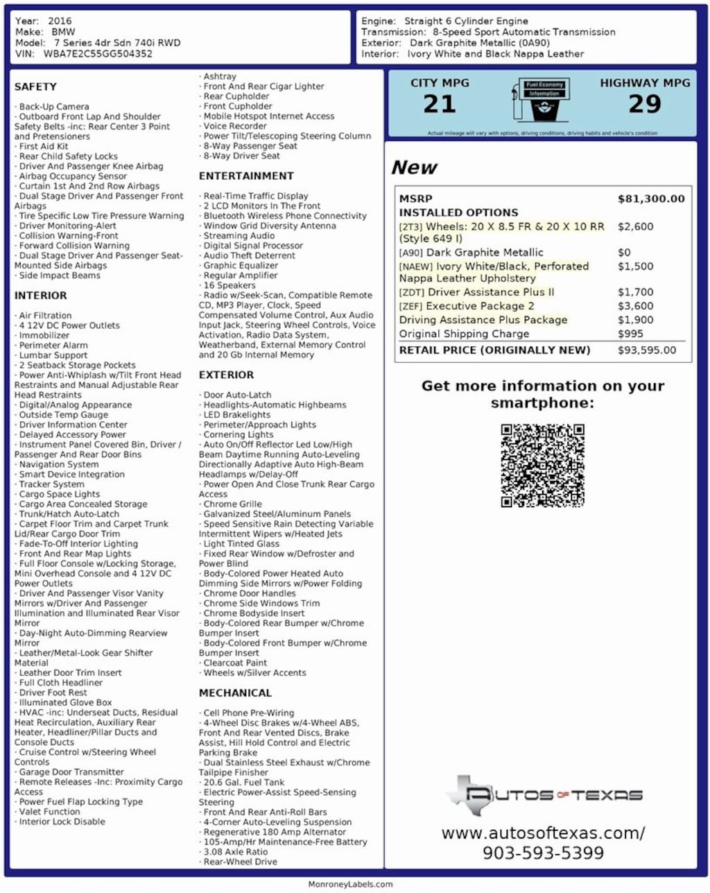 Dark Graphite 2016 BMW 7 Series 740i RWD 4D Sedan 3.0L I6 DOHC 24V TwinPower Turbo 8-Speed Automatic