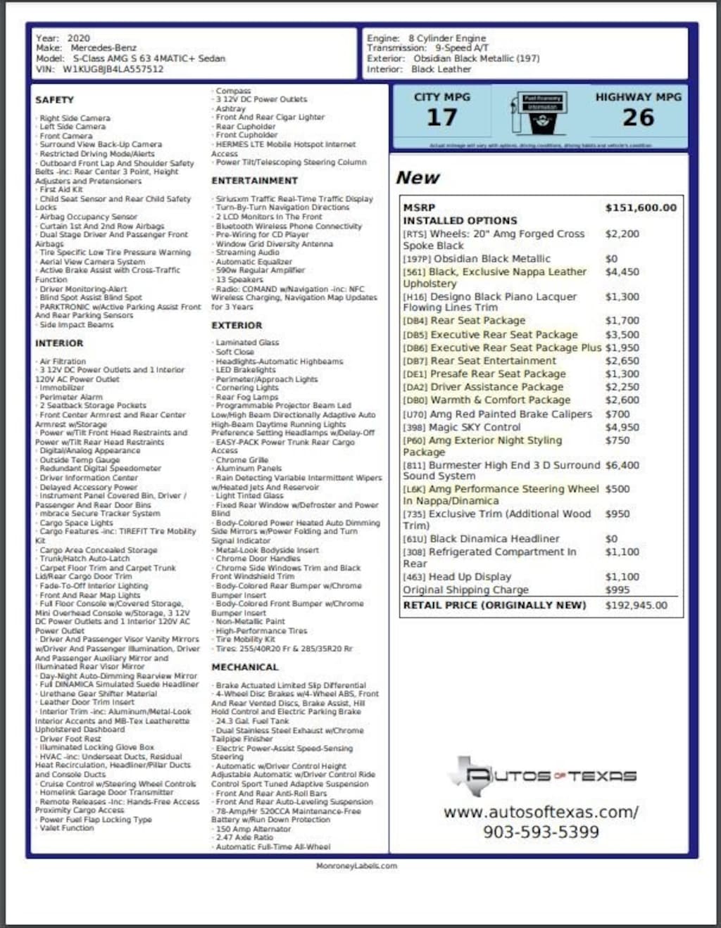 If youâre seeking the ultimate AMG performance sedan in Texas, this Obsidian Black S 63 â" equipped with Rear Entertainment, Magic Sky Roof, and Night View Assist â" is the one to own.